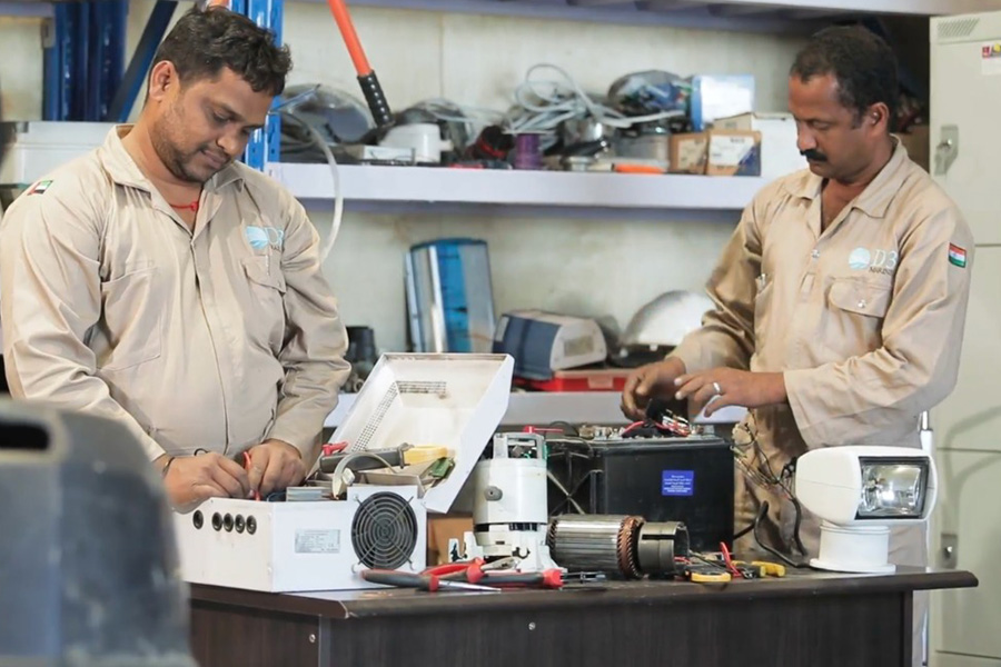 name lights are installed by us. The electrical team at A C K Ships & Boats Maintenance Services LLC does all types of boat electrical repair works and boat electrical maintenance services.